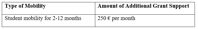 Those students who meet the above-mentioned conditions and provide documentary evidence can receive Additional Grant Support as described below, depending on the type of mobility: