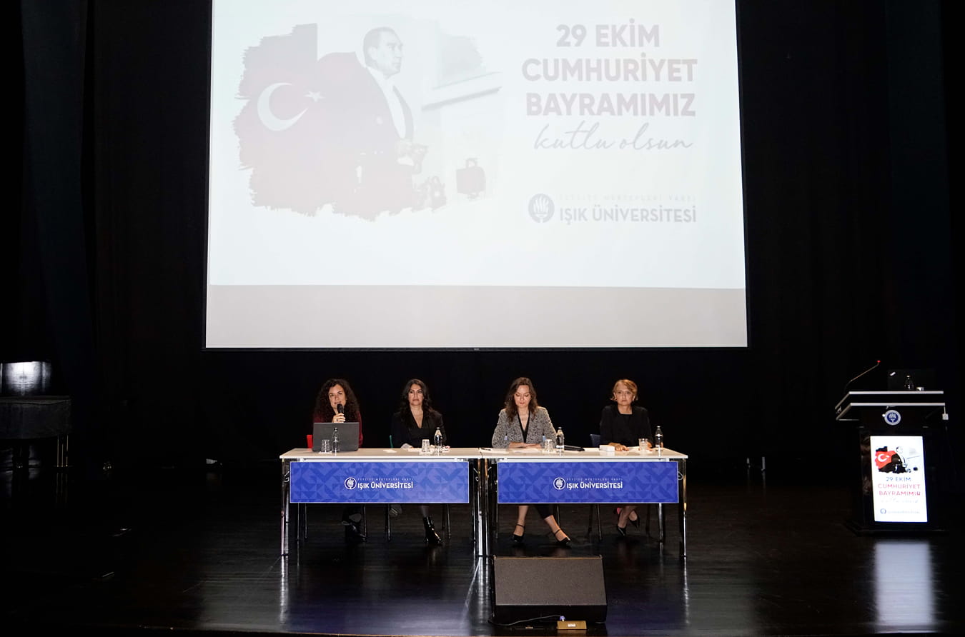 During the panel, Assoc. Prof. Dr. Selda Görkey, Head of the Department of Economics at the Faculty of Economics, Administrative, and Social Sciences; Prof. Dr. Seda Demiralp, Head of the Department of International Relations; and Assoc. Prof. Dr. Seher Şeylan from the Department of Cinema and Television at the Faculty of Art, Design, and Architecture, offered a multifaceted evaluation of the Republic’s impact on the fields of art, politics, and economy.