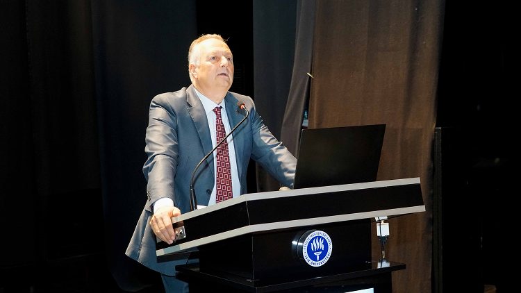The program began with a wreath-laying ceremony at the Atatürk bust by the Chairman of the Board of Trustees, Mehmet Serdar Sarıgül, and the Rector, Prof. Dr. Hasan Bülent Kahraman. Following the opening speeches, a panel titled "Art, Politics, and Economy in the Light of the Republic" was held.