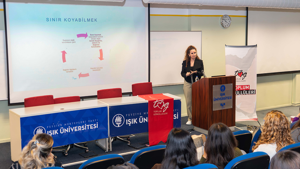 The event titled “Legal Awareness and Psychological Resilience Against Domestic Violence,” held in collaboration with the Psychological Counseling and Guidance Center and the Işık TOG Club, focused on the vital role of legal knowledge and psychological strength in addressing domestic violence. Moderated by Clinical Psychologist Gözde Ceylan, the program featured Attorney Lerzenur Elik Asan, who clarified widespread misunderstandings regarding legal rights related to domestic violence. Clinical Psychologist Saime Serpil Özgül also contributed by discussing psychological resilience, emphasizing practical approaches grounded in individuals’ inner resources.