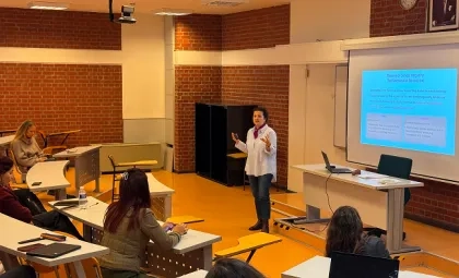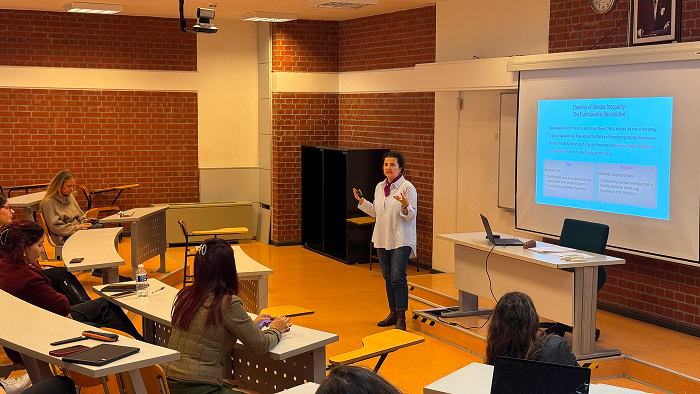 Dr. Öğr. Üyesi Müzeyyen Pandır, toplumsal cinsiyet kavramına ilişkin sunumunda; gündelik hayatın her alanında kadınlar ve erkekler için ayrıştırılan rollerin ve beklentilerin bireylerin deneyimlerini, yaşam pratiklerini ve fırsatlara erişimlerini nasıl şekillendirdiğini ele aldı. Toplumsal eşitsizliklerin nasıl üretildiğinin tartışıldığı derste öğrencilerimiz, aktif katılımları ve soruları sayesinde “doğal” kabul edilen kalıpları düşünme ve sorgulama fırsatı buldu.